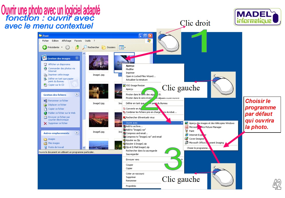 Extraits du fascicule d'initiation à Windows XP. Ces fiches créées de manière ludique sont destinées à vous montrer les différentes étapes qui vous permettront de réaliser les fonctions simples et élémentaires du système d'exploitation